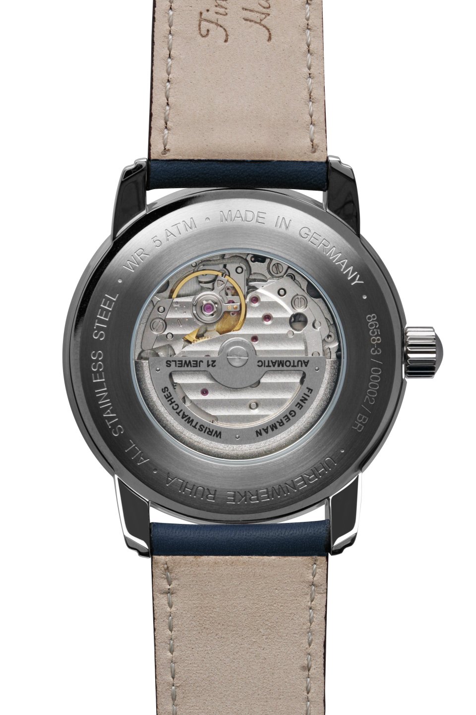 • Weißes Ziffernblatt mit nachtblauen Zahlen/Indices