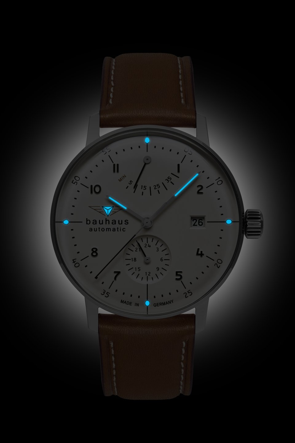 Bauhaus Herrenuhr Automatik mit Gangreserveanzeige und Lederarmband