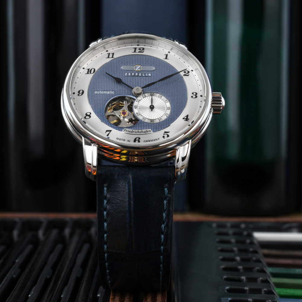 Zeppelin Herrenuhr Automatik mit Open Heart und Lederarmband