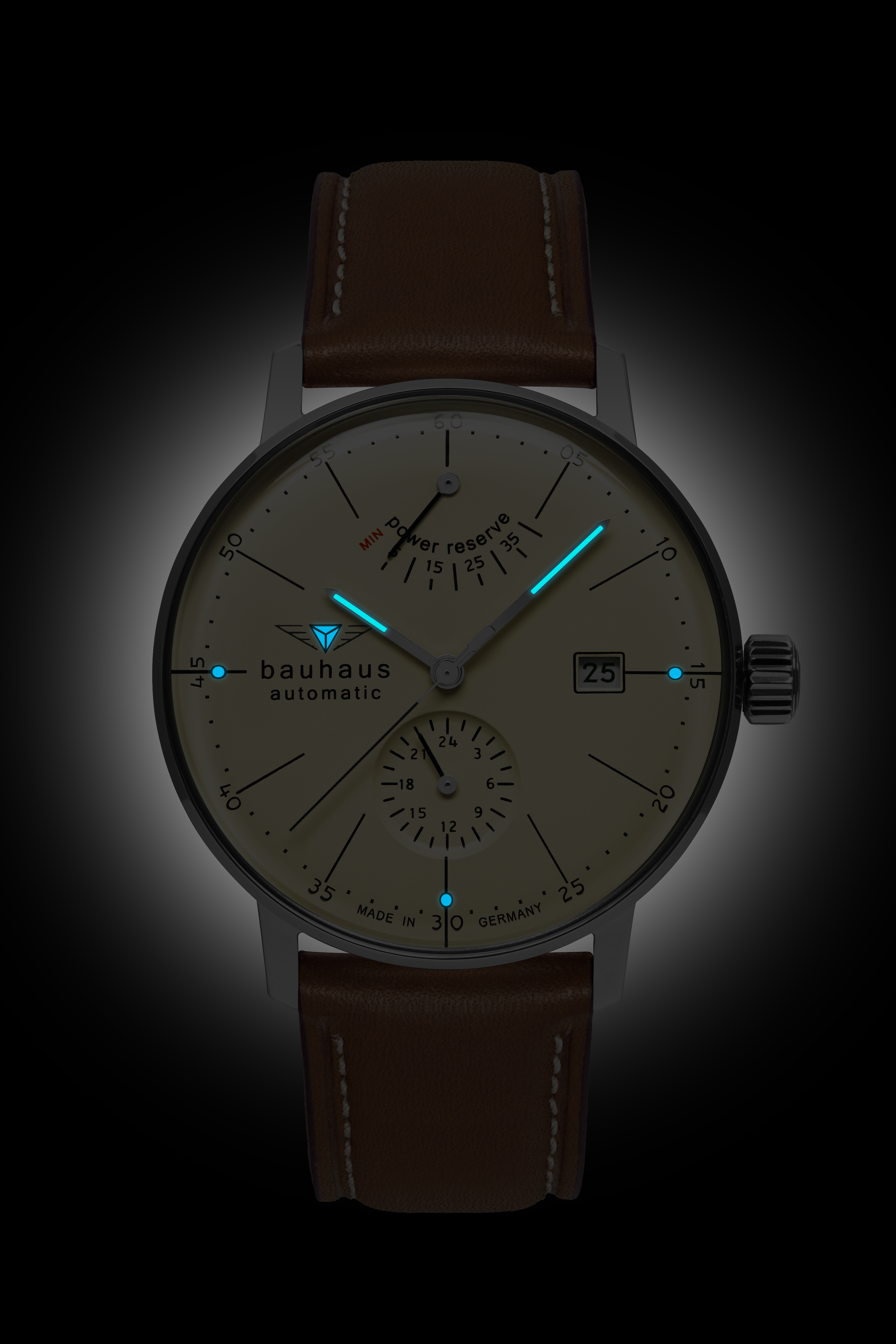 Bauhaus Herrenuhr Automatik mit Gangreserveanzeige und Lederarmband