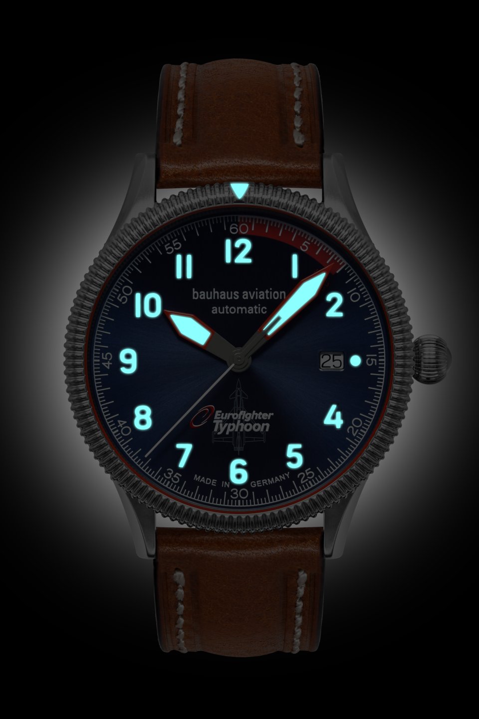 bauhaus Aviation Herrenuhr Automatik mit Datum und Lederarmband