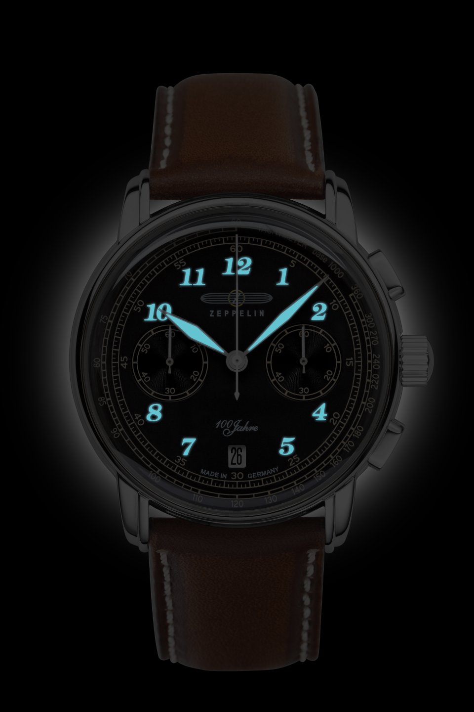 Zeppelin Herrenuhr Quarz Chronograph mit Lederarmband