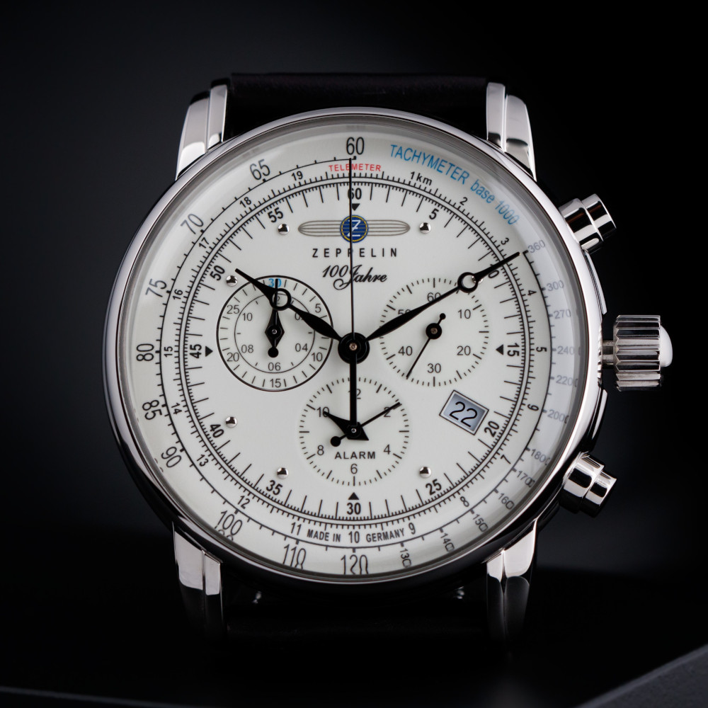 Die Luftschiffe des Grafen Zeppelin stellten in den 20er und 30er Jahren des vergangenen Jahrhunderts nicht nur die eleganteste und luxuriöseste Art zu reisen dar, sondern waren auch technische Meisterleistungen ihrer Zeit. Die Uhren der Jubiläums-Kollektion „100 Jahre Zeppelin“ vereinen klassisch-elegante Elemente wie gewölbte Zifferblätter und Gläser mit modernen Akzenten.